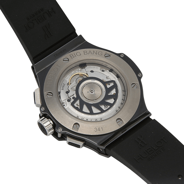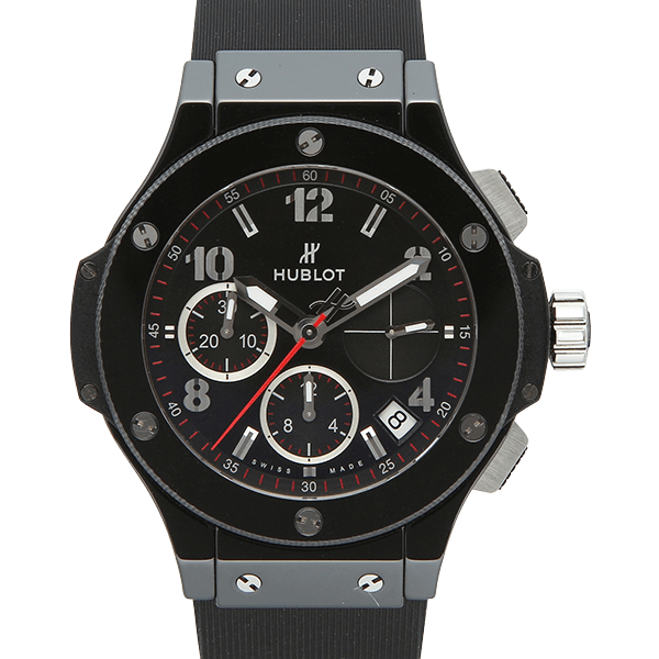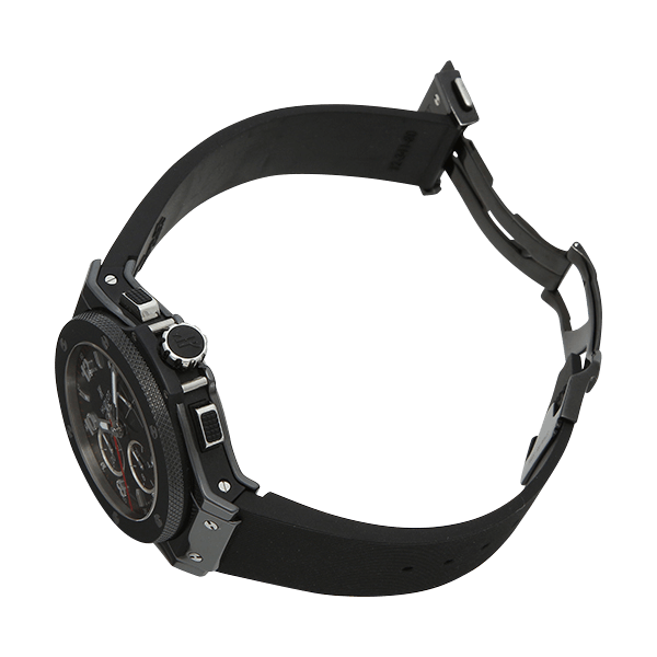 両サイドの突起とベルト・ベゼル部分のビス留めデザインが特徴的な、ウブロを代表するシリーズ「ビッグバン」です。